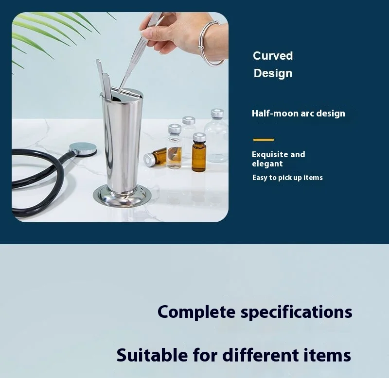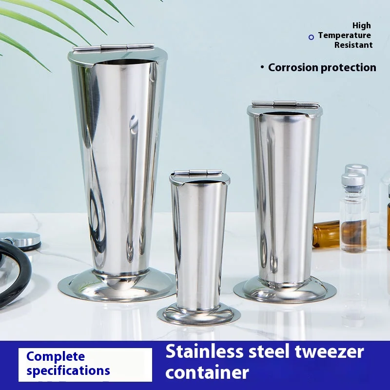 Thickened Stainless Steel Tweezer Barrel Lid Inverted Cone Bubble Design Utensils Container for Basis Surgical Instruments